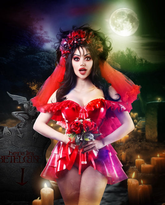 Latex Lydia Bodysuit and Tiered Peplum Belt